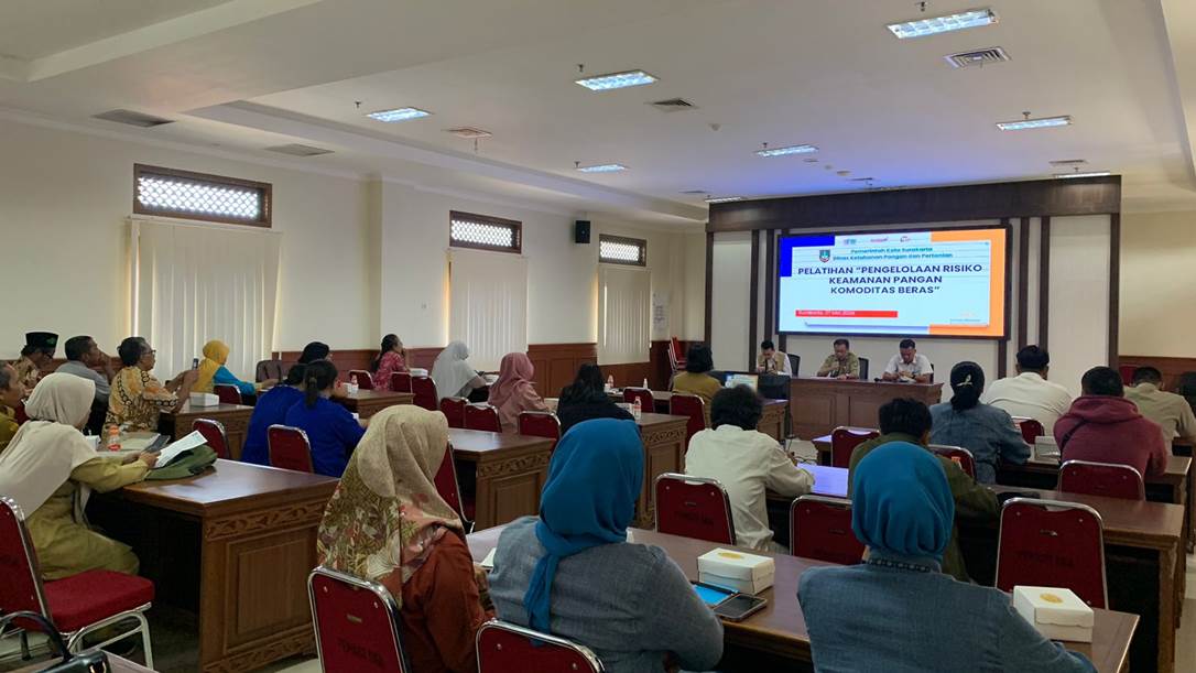 Dinas Ketahanan Pangan dan Pertanian (Dispangtan) Kota Surakarta menyelenggarakan acara Pelatihan Pengelolaan Resiko Keamanan Pangan Komoditas Beras, yang bertempat di Aula Dinas Kesehatan Kota (DKK) Surakarta dan diikuti sebanyak 60 orang pelaku usaha beras di Kota Surakarta. Sebagai narasumber adalah Singgih Dwi Cahyo S. Farm dari BPOM Surakarta dan Agus Susanto dari BULOG Surakarta. Acara ini diselenggarakan dengan tujuan untuk meningkatkan pengetahuan dan keterampilan kita dalam mengelola keamanan pangan komoditas beras. Dengan pemahaman yang lebih mendalam mengenai prosedur dan standar keamanan pangan, kita berharap dapat meminimalisir risiko kesehatan yang mungkin timbul akibat konsumsi beras yang tidak aman.
